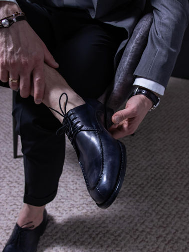 Дерби из гладкой кожи, удобная шнуровка легка в регулировке по Вашей ноге, а ручной шов добавляет изюминки в Ваш образ. Отлично подходит под классический костюм и джинсы.