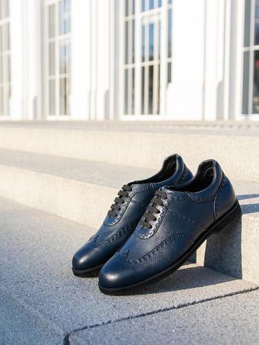 Стильные и удобные кроссовки, которые выглядят как классические ботинки? Представляем вам пару глубокого синего цвета с ручной окантовкой.
