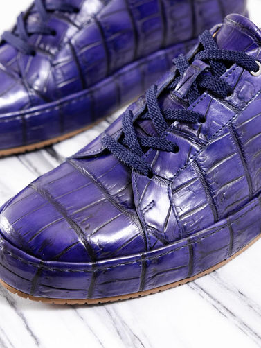 Обувь на заказ создается и персонализируется именно под Вас. Пара выполнена полностью из крокодила, а также с подошвой из крокодила - это создает максимальный акцент на Вашем образе. Джинсы - один из лучших спутников к таким сникерам.