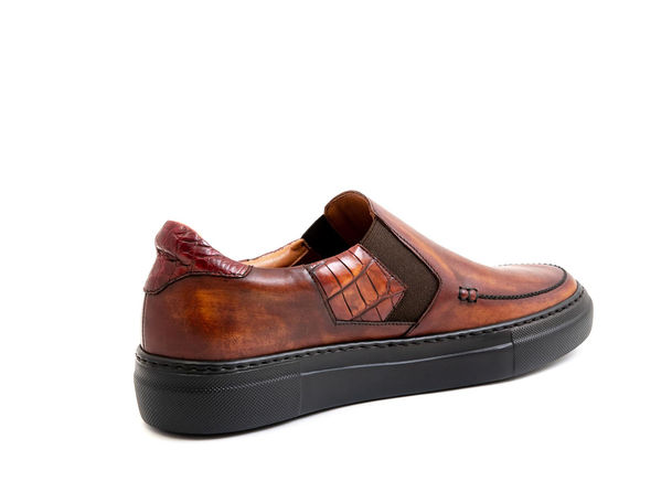 Кеды без шнуровки редко бывают красивыми. В основном это минималистичный дизайн, который делает ее невидимой для остальных. Мы поступили иначе. Создавая ручной окрас и персональный оттенок, мы максимально акцентируем на ней внимание.